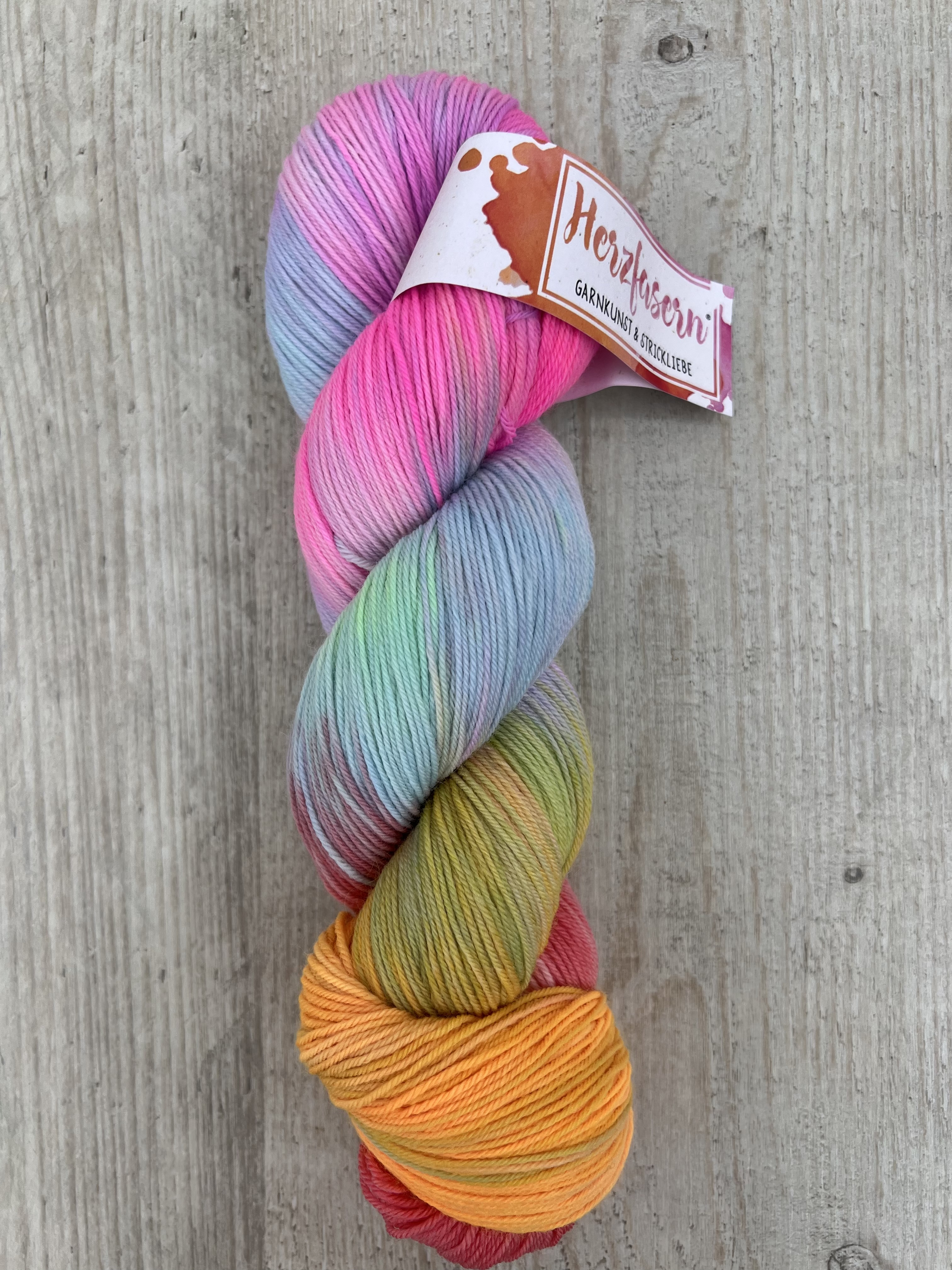 Gefärbt auf Herzfasern No. 27 (6-fach Sockenwolle, ca. 420 m/150 g) – perfekt für kuschelige Socken, Tücher und Pullover.