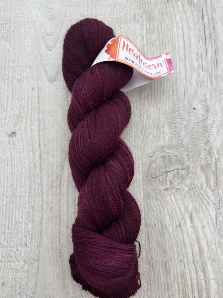 „Cabernet“ vereint alles, was dunkle Rottöne so besonders macht: Wärme, Tiefe, Eleganz und eine leichte Melierung, die durch die Fasermischung der No. 33 besonders schön hervorkommt. Der Ton wirkt edel und ruhig, hat aber gleichzeitig genug Kraft, um als Statementfarbe zu glänzen – egal ob im Tuch, als leichter Pullover, in einem Laceprojekt oder in Kombination mit anderen Naturtönen.