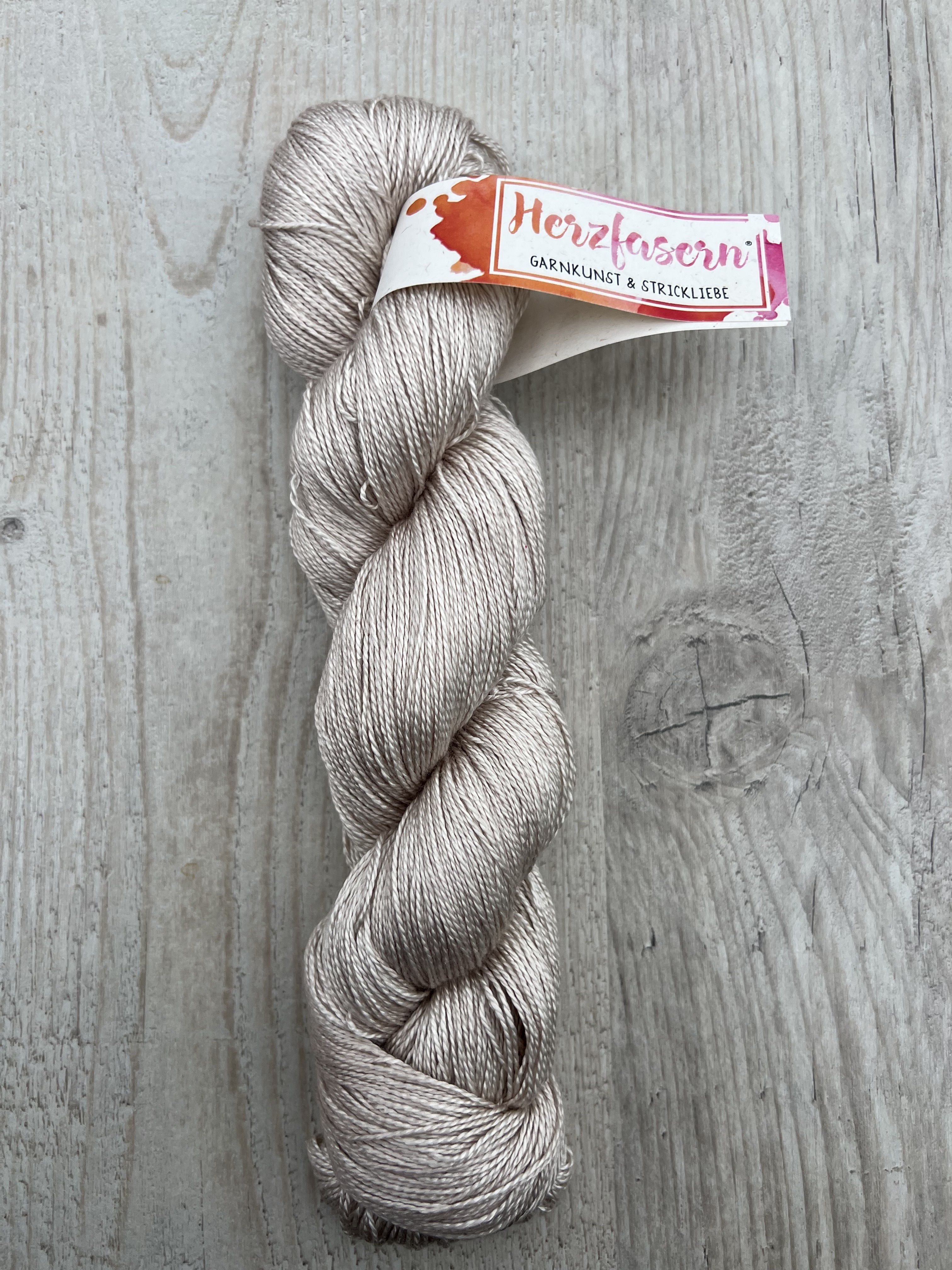 Mit Sand bringst du Ruhe ins Strickstück – ein zarter Beige-Ton mit seidigem Glanz, der je nach Lichteinfall zwischen Champagner, Elfenbein und warmem Naturweiß changiert. Diese Farbe ist der Inbegriff von schlichter Eleganz – niemals langweilig, sondern zeitlos schön.