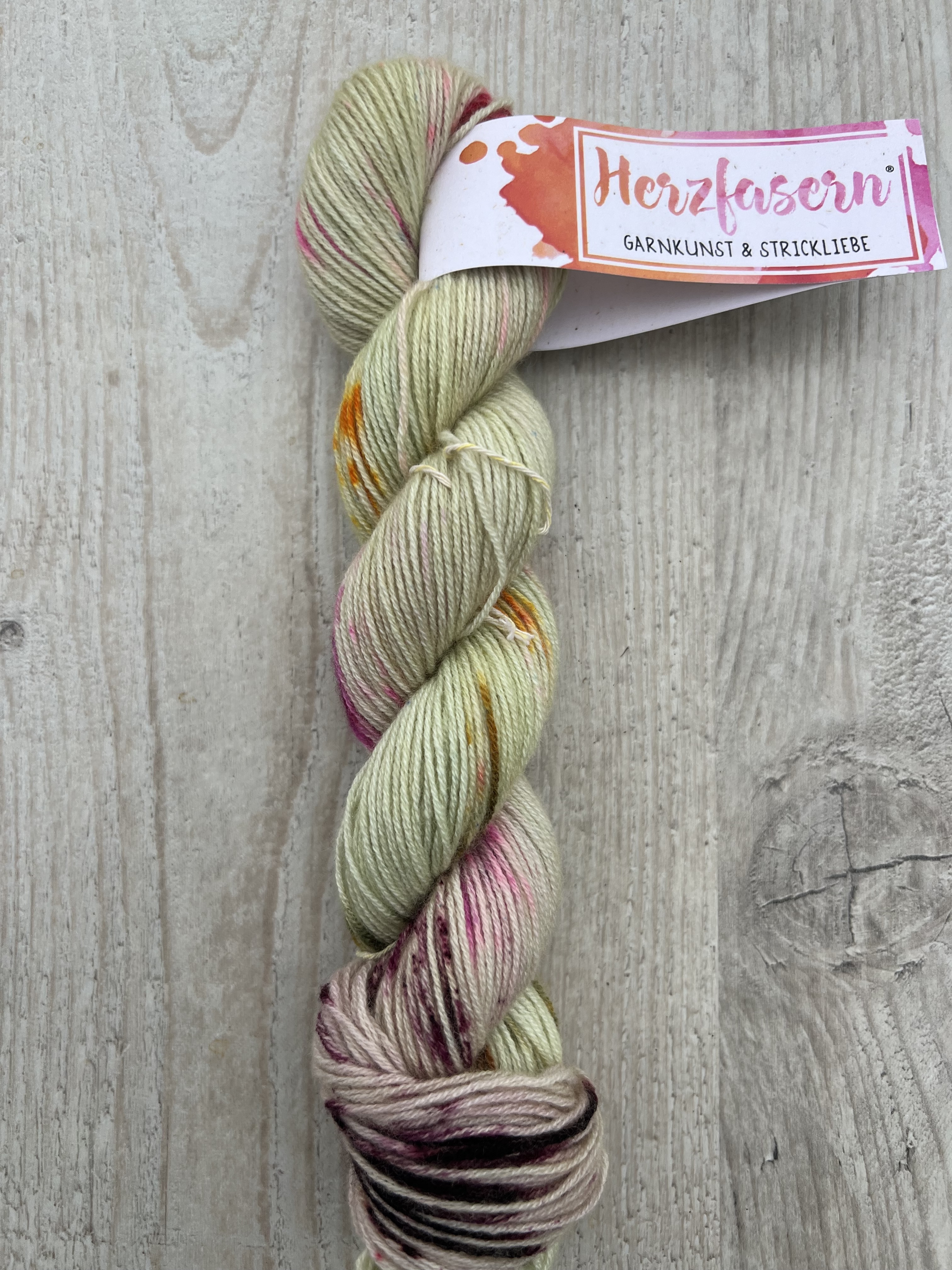 Auch wenn wir mehrere Stränge im selben Färbetopf färben – jedes einzelne Strängchen ist ein kleines Kunstwerk für sich. Handfärbungen leben von ihrer Lebendigkeit und Nuance, und so kann es zu feinen Unterschieden zwischen den Strängen kommen. Das ist kein Fehler, sondern ein Zeichen echter Handarbeit.