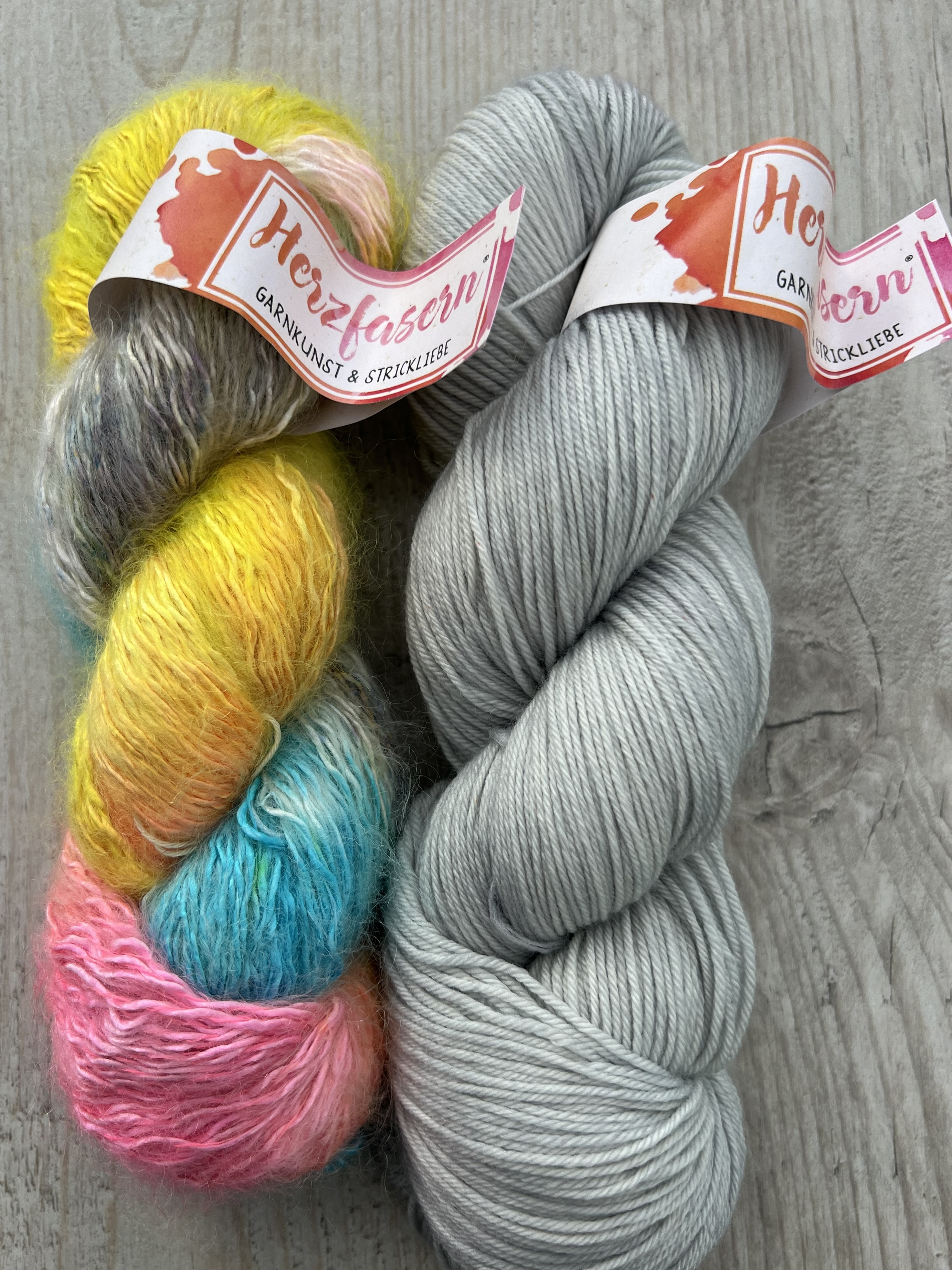HerzfaserNo. 50: 67 % Seide, 23 % Mohair, 10 % Polyamid, ca. 350 m / 100 g