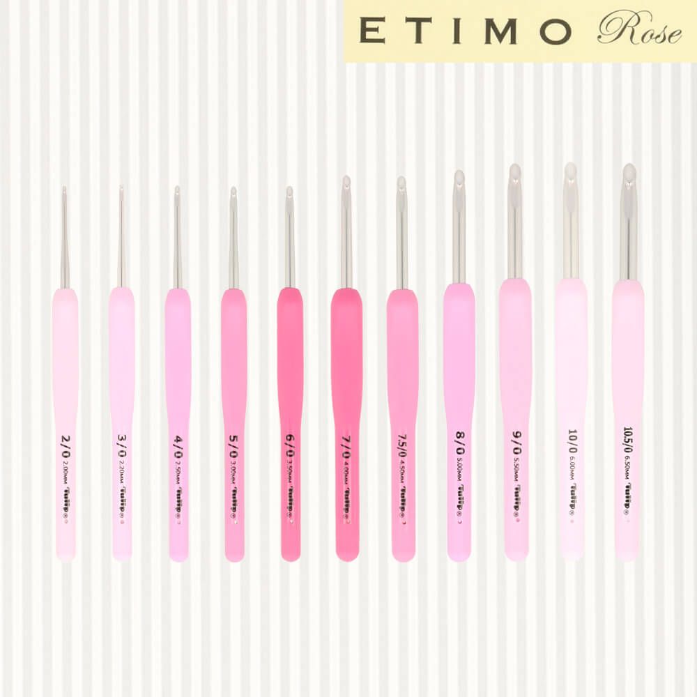 Die wunderschönen Etimo Rose Aluminium-Häkelnadeln von Tulip sorgen dank des komfortablen weichen Softgriffs für stundenlanges Häkelvergnügen, ohne dass die Hände ermüden. Die Häkelnadelspitze ist sehr präzise und hat eine perfekt glatte Oberfläche. Dadurch gleitet jede Art von Garn mühelos über die Nadel ohne hängenzubleiben. Der weiche Kunststoffgriff ist in verschiedenen charmanten Rosatönen ausgeführt und die Nadelstärke ist gut lesbar auf dem Griff angegeben. Die Häkelnadeln sind in den Nadelstärken 2.00, 2.20, 2.25, 2.50, 3.00, 3.50, 4.00, 4.50, 5.00, 5.50, 6.00 und 6.50mm. Lieferung pro 1 Stück.